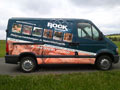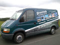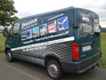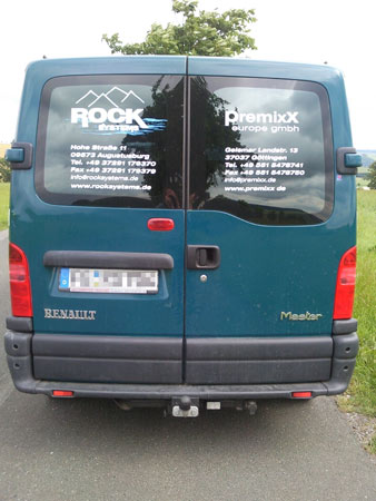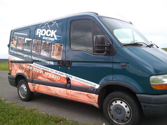 War die Gestaltung des Fahrzeugs bisher eher unscheinbar, kommt der Transporter jetzt sehr viel farbenfreudiger daher. Neben den Kontaktdaten bilden hierbei Referenzphotos die Basis an den Seiten. So kann man schon auf den ersten Blick erkennen wo die Herstellungsschwerpunkte unserer Firma liegen.
